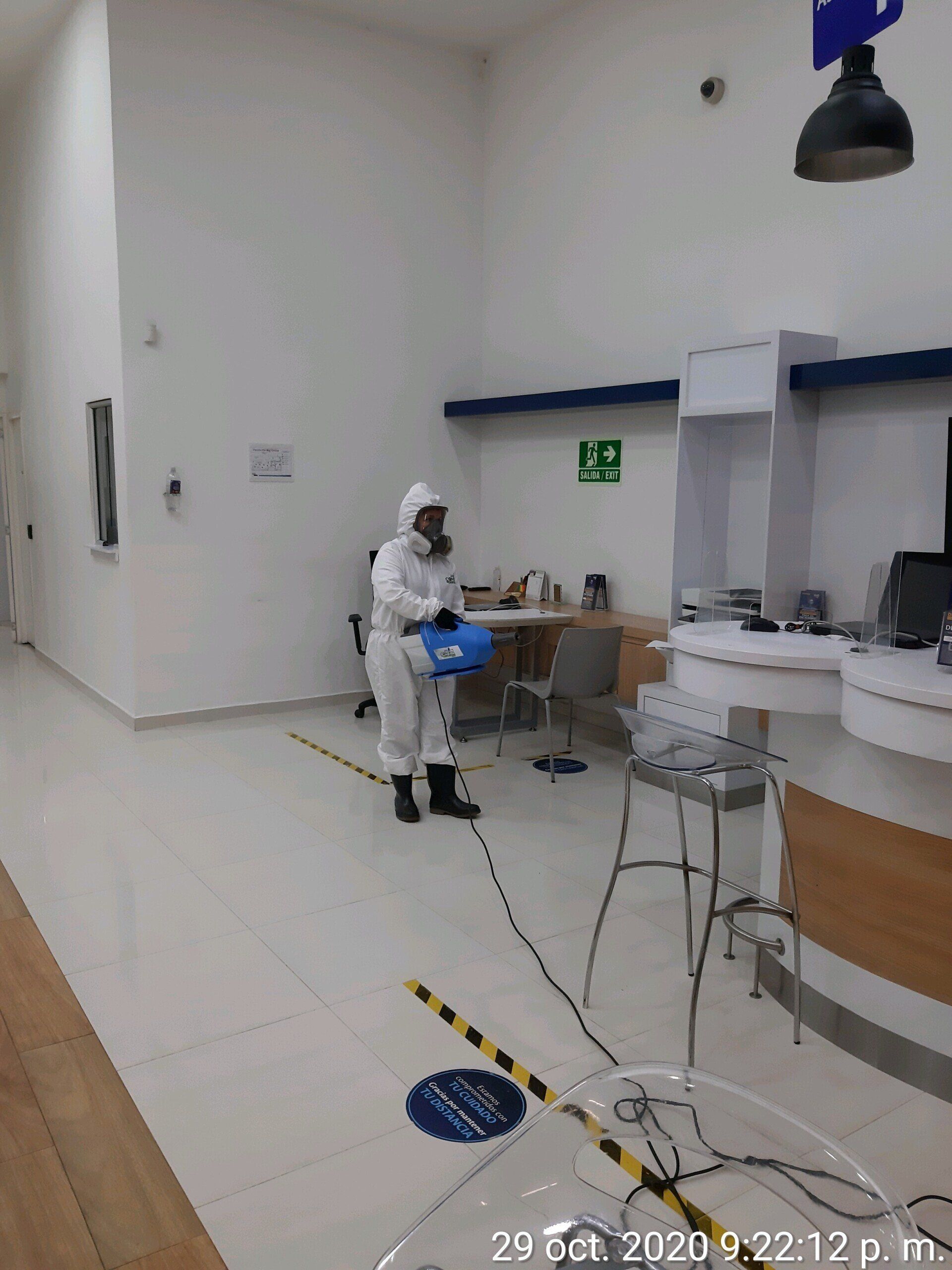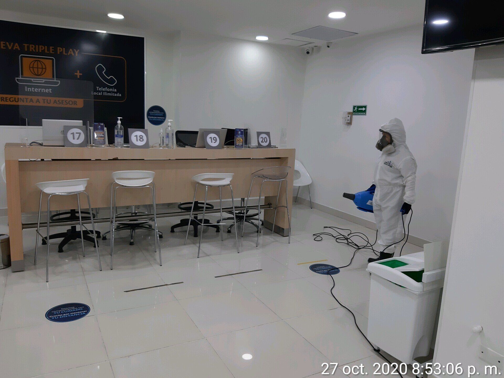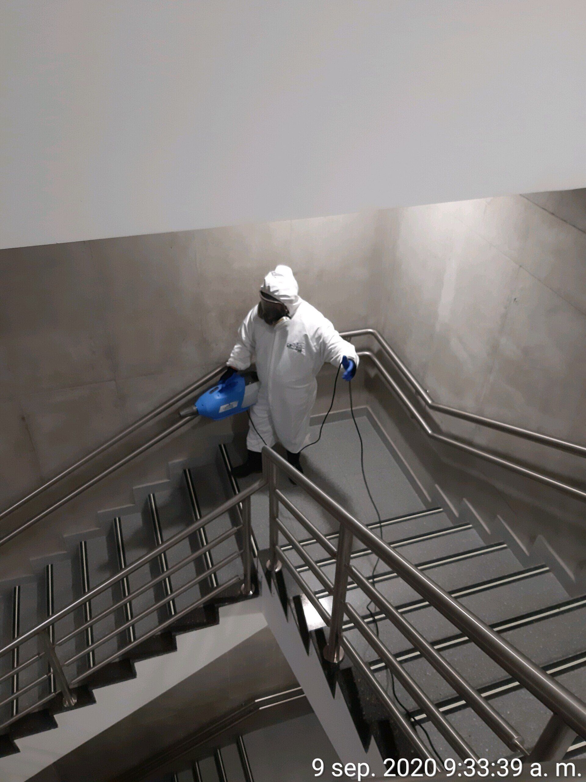 Las actividades de desinfección se realizan para erradicar la presencia de microorganismos que se encuentren en superficies u objetos inertes, el uso de productos como los amonios cuaternarios garantizan una efectividad del 99.9% sobre bacterias, esporas, mohos, virus (covid-19) y hongos; la aplicación se realiza con máquinas ULV nebulizadores eléctricos los cuales permiten una mayor cobertura por la expulsión de micro gotas.